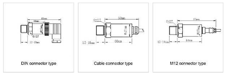 Electrical Connections Time Response Weight | DIN connector type, M12 connector type, cable connector type
